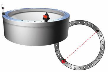 圆平面(如法兰)上的平整度/扭曲测量还基于使用三个参考点,位于圆周围120°的间隔处。确定测量点的数量以及哪些测量点将作为激光平面的参考点。现在显示的所有测量结果都与三个选定的参考点/激光飞机相关。Easy-Laser具有专门设计用于检查风力涡轮机塔法兰平面的测量系统,该软件包括帮助您进行高级最佳匹配计算。